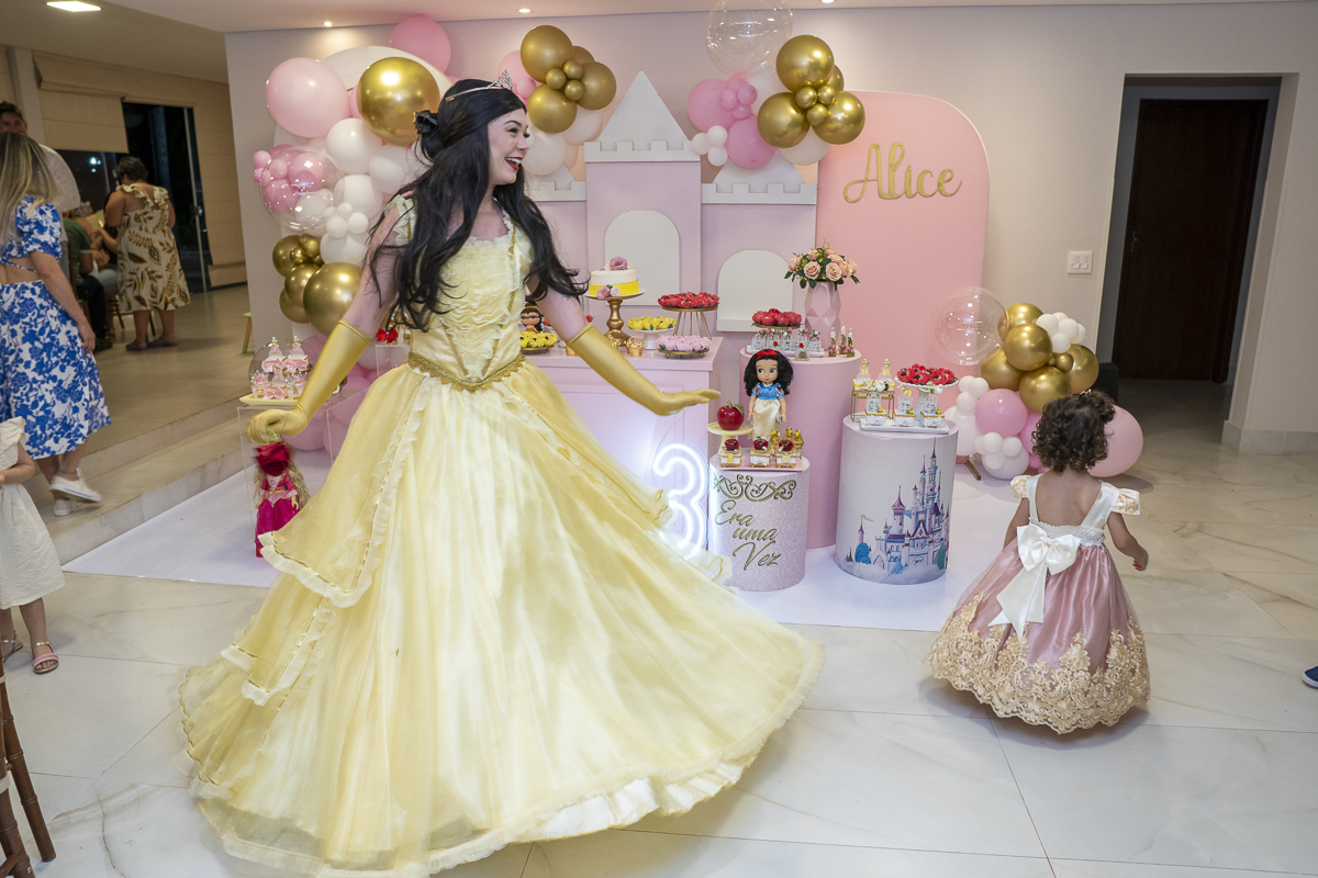 Fotografar a festa de aniversário de Alice foi uma experiência verdadeiramente encantadora e memorável. O ambiente transformado em um reino de conto de fadas, repleto de muitas princesas da Disney, trouxe uma magia especial à celebração. A alegria nos olhos da pequena aniversariante ao se deparar com suas princesas favoritas, os sorrisos radiantes das crianças vestidas com trajes encantadores e a atmosfera lúdica criada pelos detalhes temáticos tornaram cada momento digno de um conto de fadas. Capturar a felicidade efervescente de Alice e seus convidados, imersos em um mundo de fantasia e imaginação, fez com que cada foto contasse uma história única e colorida desse dia tão especial. Foi uma festa onde a realidade se entrelaçou com a magia, resultando em imagens que são verdadeiras lembranças encantadas.